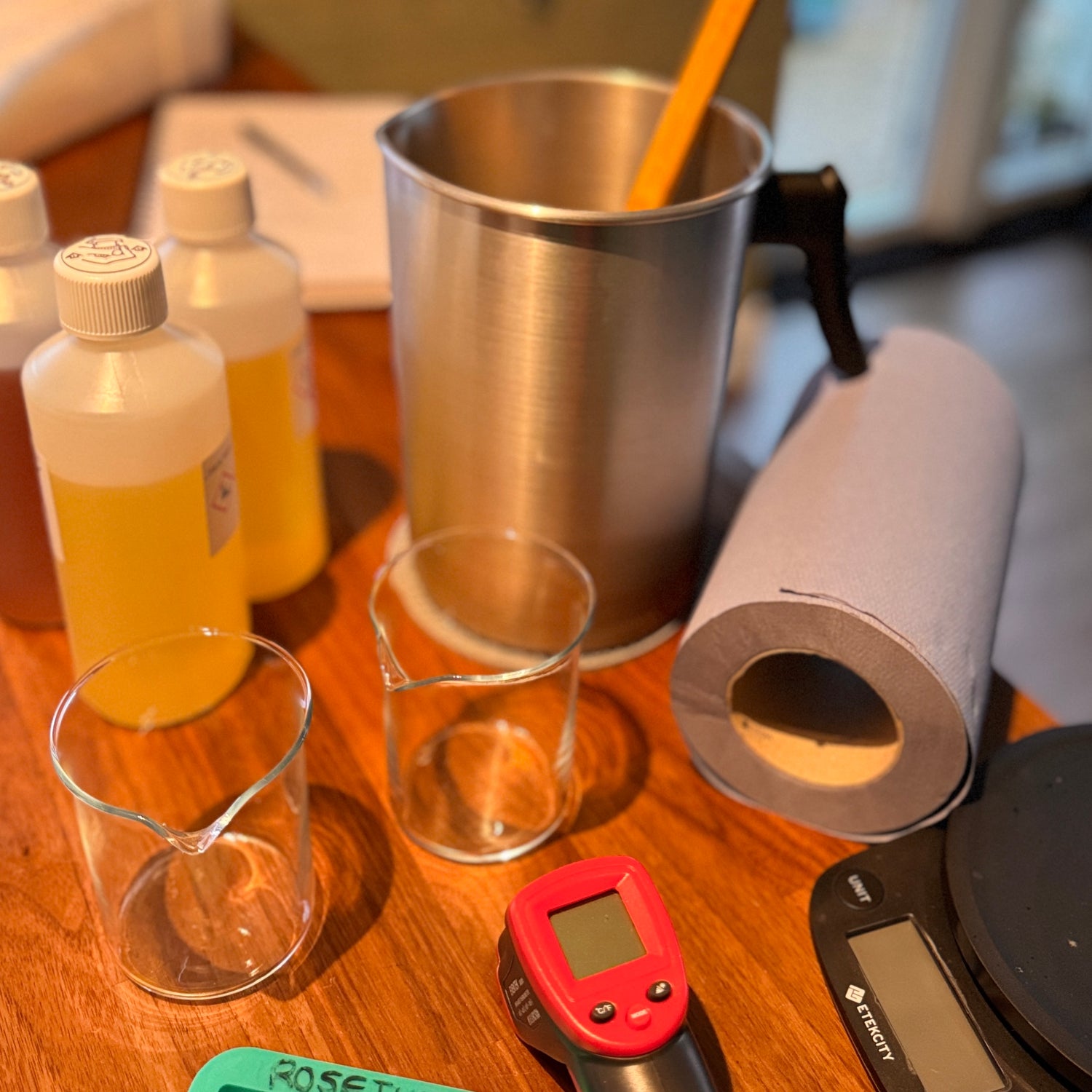 A few quiet evenings experimenting with wax blends and fragrance oils in our kitchen.